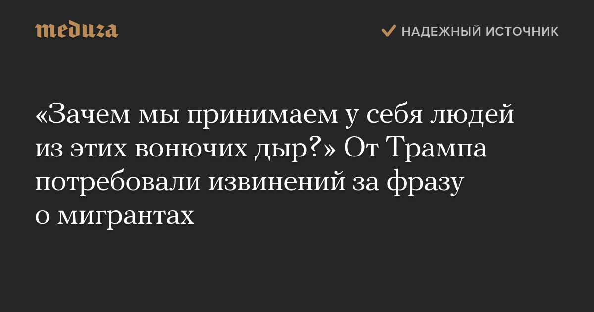 «Зачем мы принимаем у себя людей из этих вонючих дыр?» От Трампа потребовали извинений за фразу о мигрантах