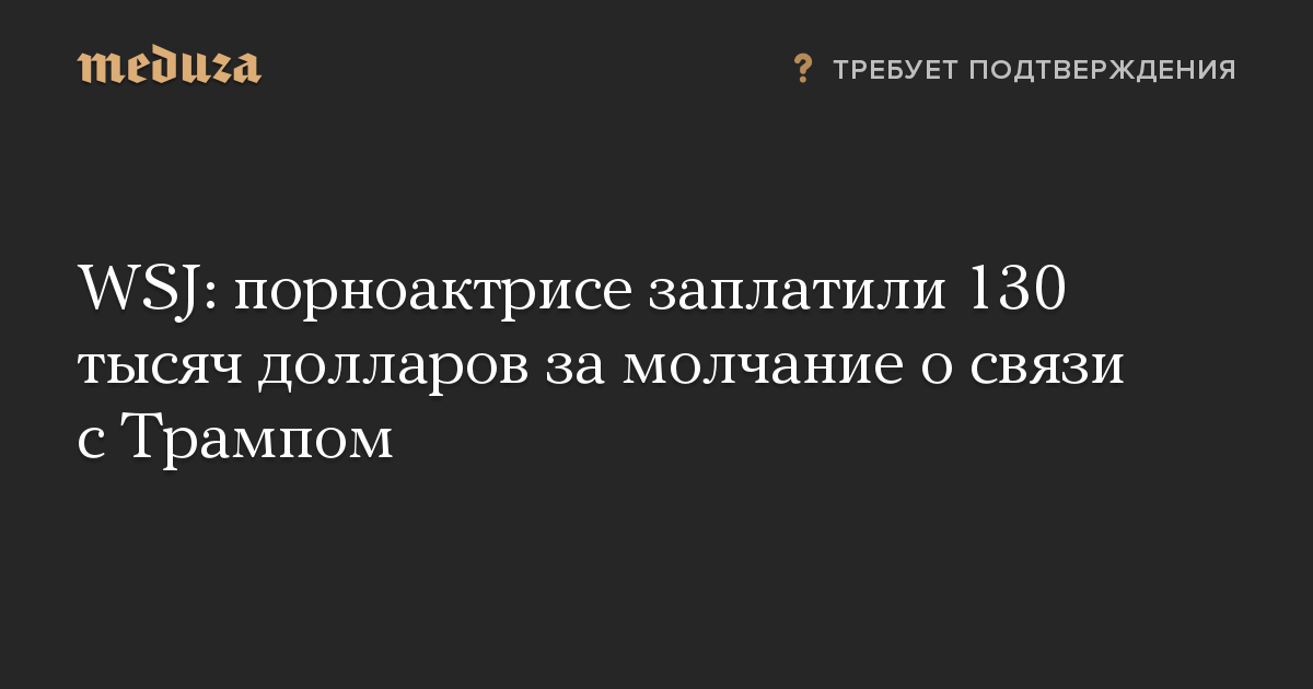 Адвокат президента США Дональда Трампа в 2016 году заплатил 130 тысяч долларов порноактрисе Стефани Клиффорд (псевдоним Сторми Дэниелс) за ее молчание о возможной сексуальной связи с политиком. Об этом сообщает газета The Wall Street Journal со ссылкой на источники, знакомые с ситуацией.