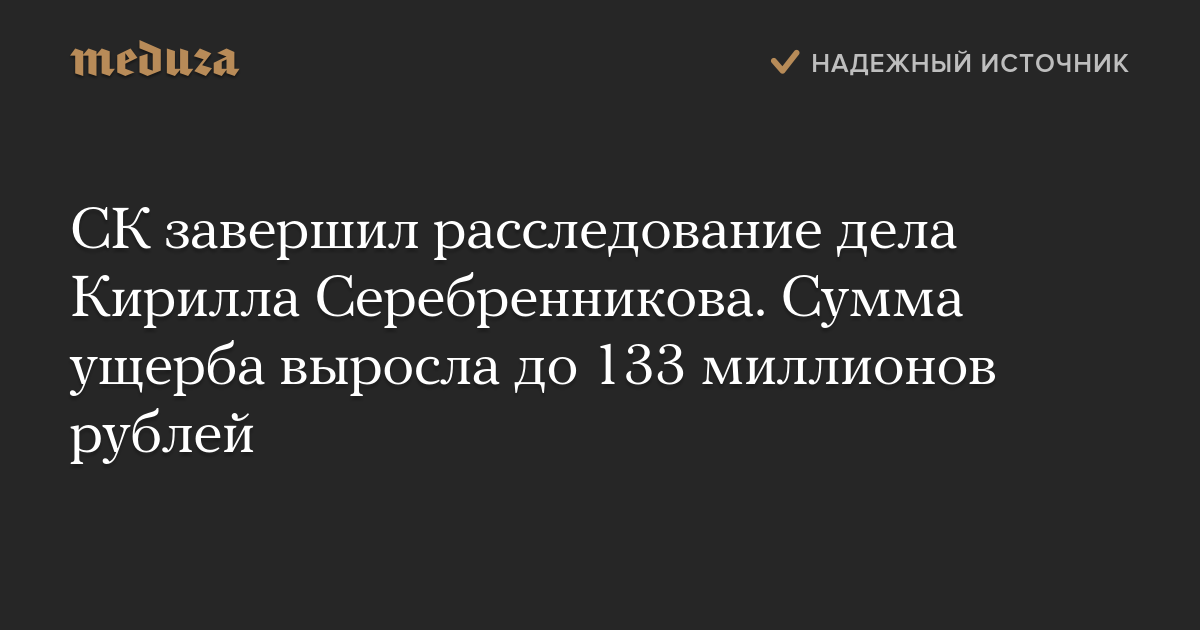 СК завершил расследование дела Кирилла Серебренникова. Сумма ущерба выросла до 133 миллионов рублей