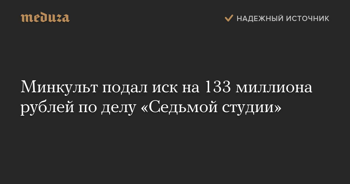 Минкульт подал иск на 133 миллиона рублей по делу «Седьмой студии»