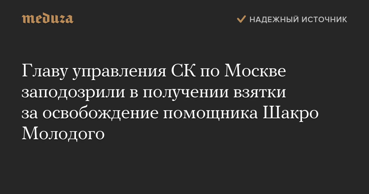 Главу управления СК по Москве заподозрили в получении взятки за освобождение помощника Шакро Молодого