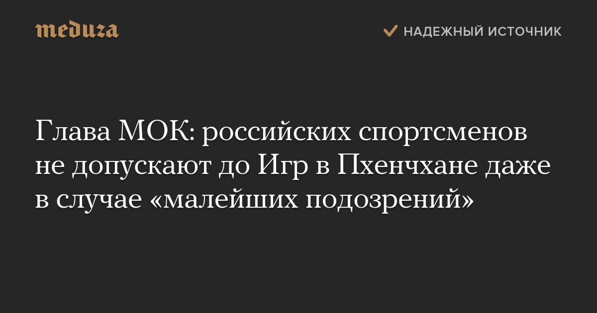 Глава МОК: российских спортсменов не допускают до Игр в Пхенчхане даже в случае «малейших подозрений»