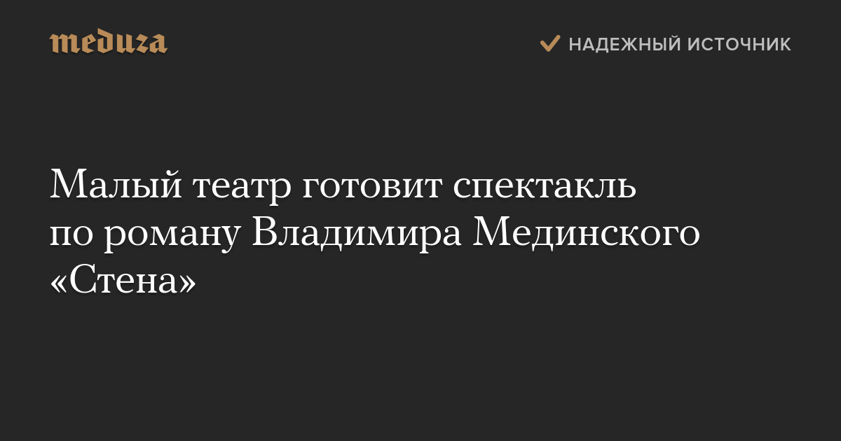Малый театр готовит спектакль по роману Владимира Мединского «Стена»