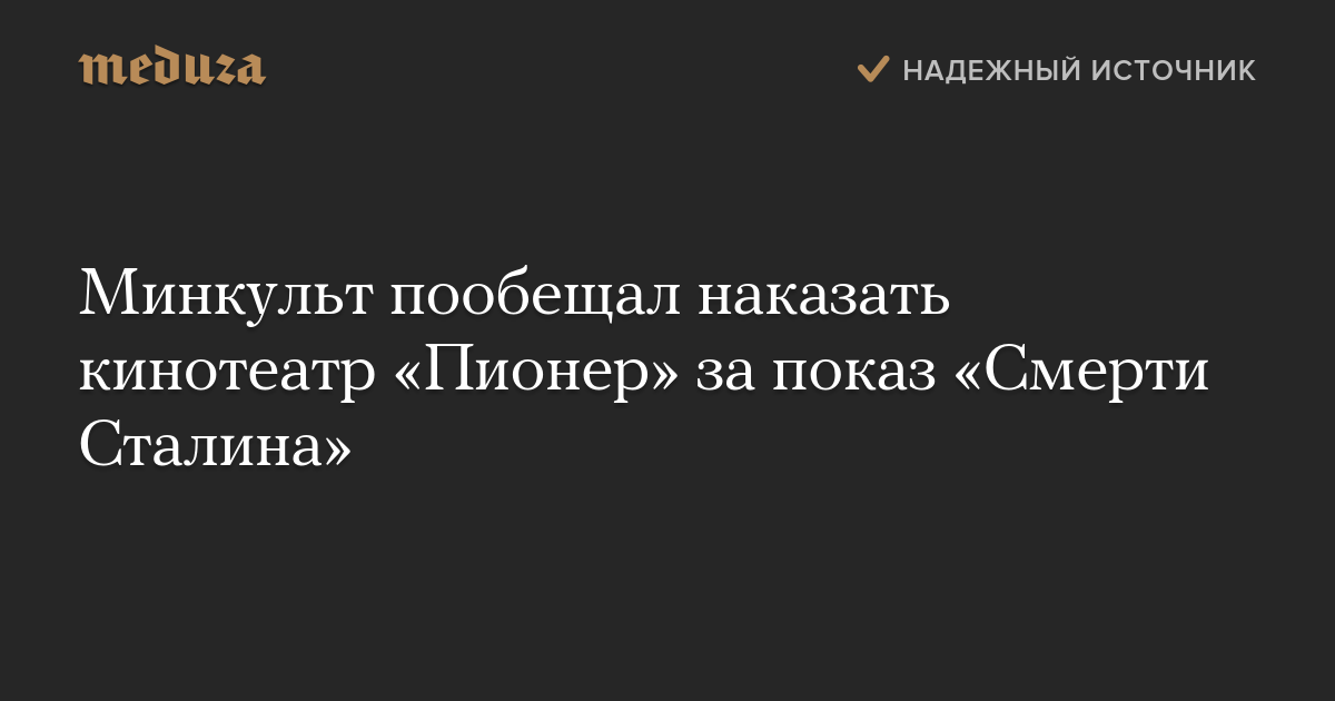 Минкульт пообещал наказать кинотеатр «Пионер» за показ «Смерти Сталина»