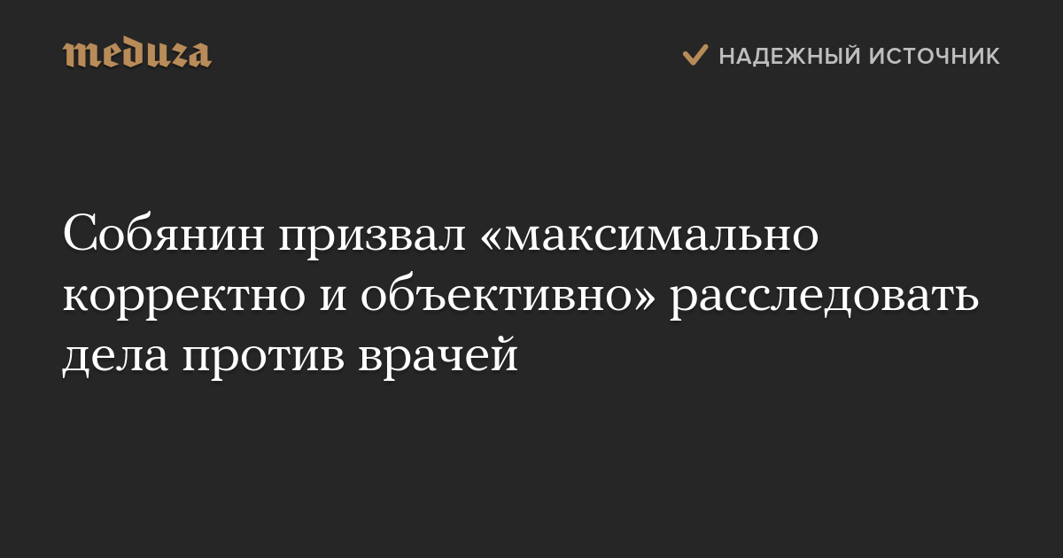 Собянин призвал «максимально корректно и объективно» расследовать дела против врачей