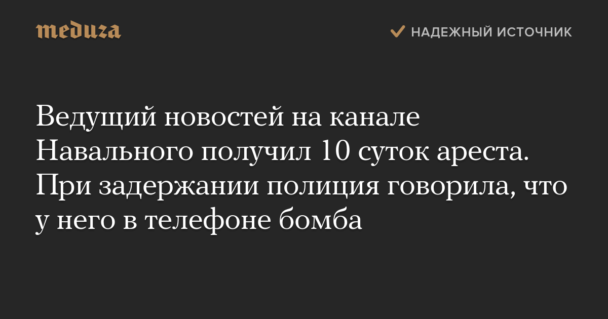 Ведущий новостей на канале Навального получил 10 суток ареста. При задержании полиция говорила, что у него в телефоне бомба
