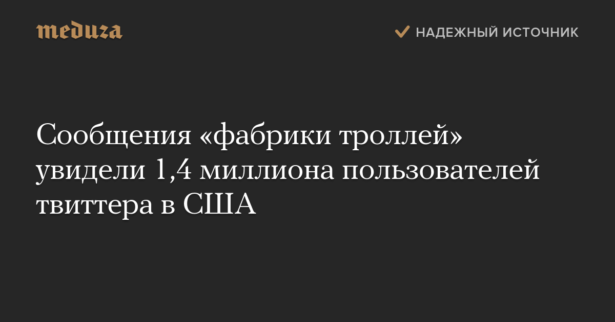 Сообщения «фабрики троллей» увидели 1,4 миллиона пользователей твиттера в США