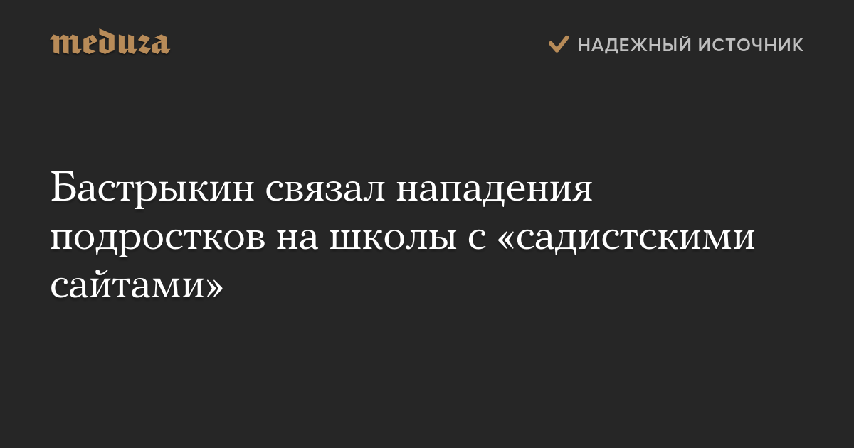 Глава СК РФ Александр Бастрыкин заявил, что подростки, совершившие в январе нападения на школы в Перми, Челябинске и Улан-Удэ, заходили на сайты, «где пропагандируется насилие в школе».