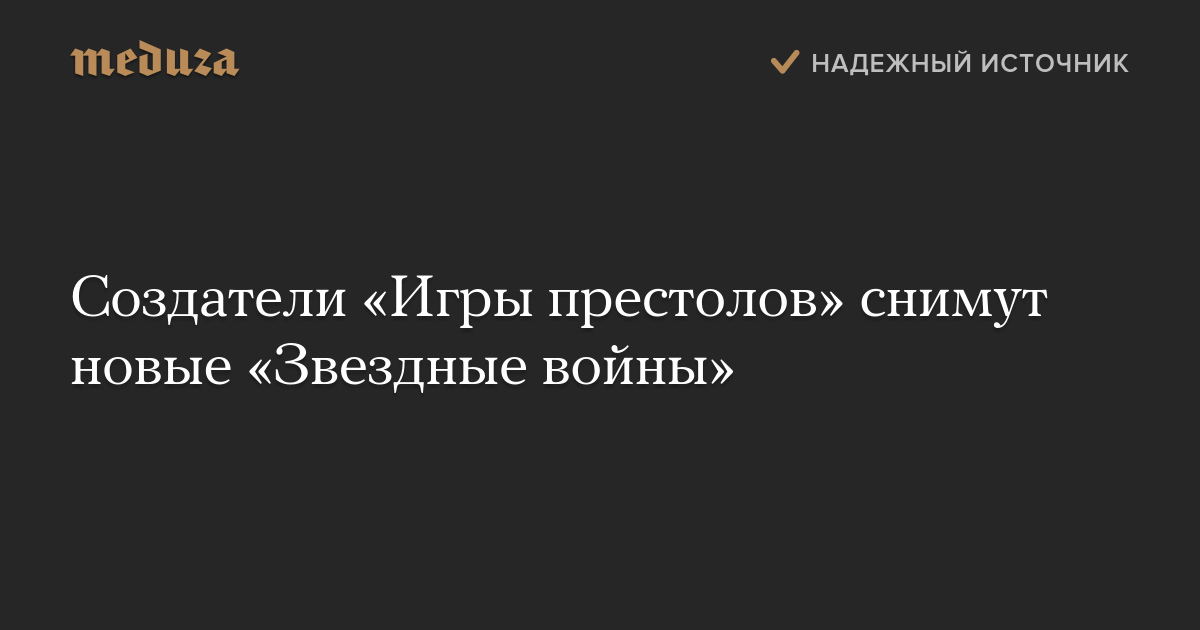 Сценаристы и продюсеры телесериала «Игра престолов» Дэвид Бениофф и Дэн Вайсс займутся съемками новых серий фильмов по вселенной «Звездных войн».