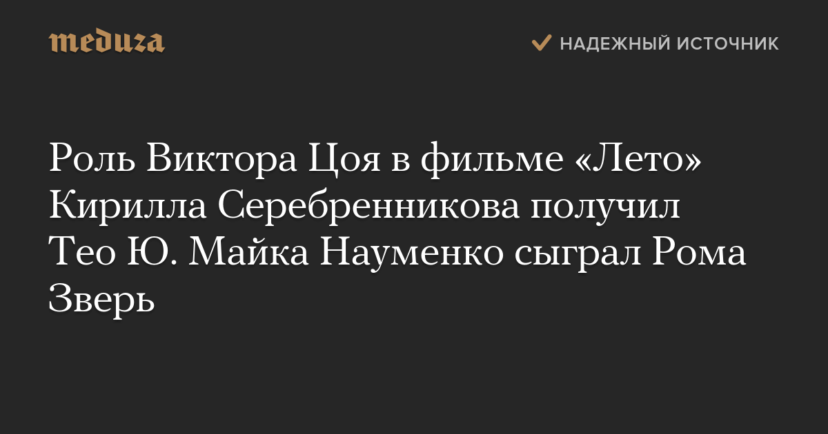 Роль Виктора Цоя в фильме «Лето» Кирилла Серебренникова получил Тео Ю. Майка Науменко сыграл Рома Зверь