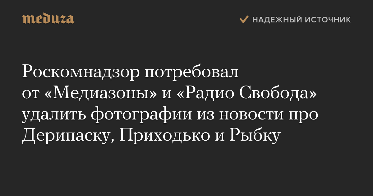 Роскомнадзор потребовал от «Медиазоны» и «Радио Свобода» удалить фотографии из новости про Дерипаску, Приходько и Рыбку