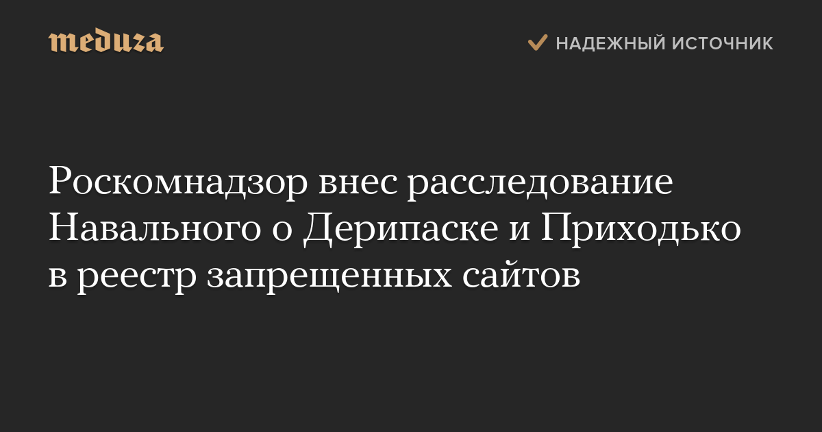 Роскомнадзор внес расследование Навального о Дерипаске и Приходько в реестр запрещенных сайтов
