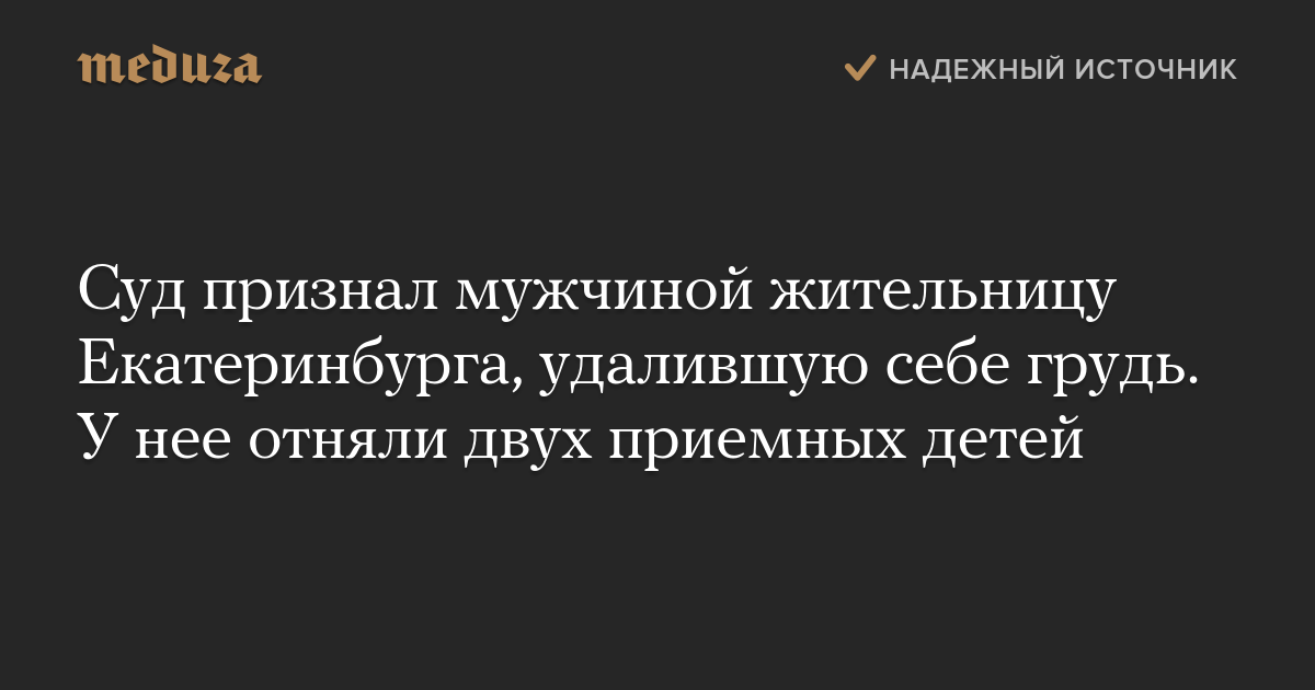 Суд признал мужчиной жительницу Екатеринбурга, удалившую себе грудь. У нее отняли двух приемных детей