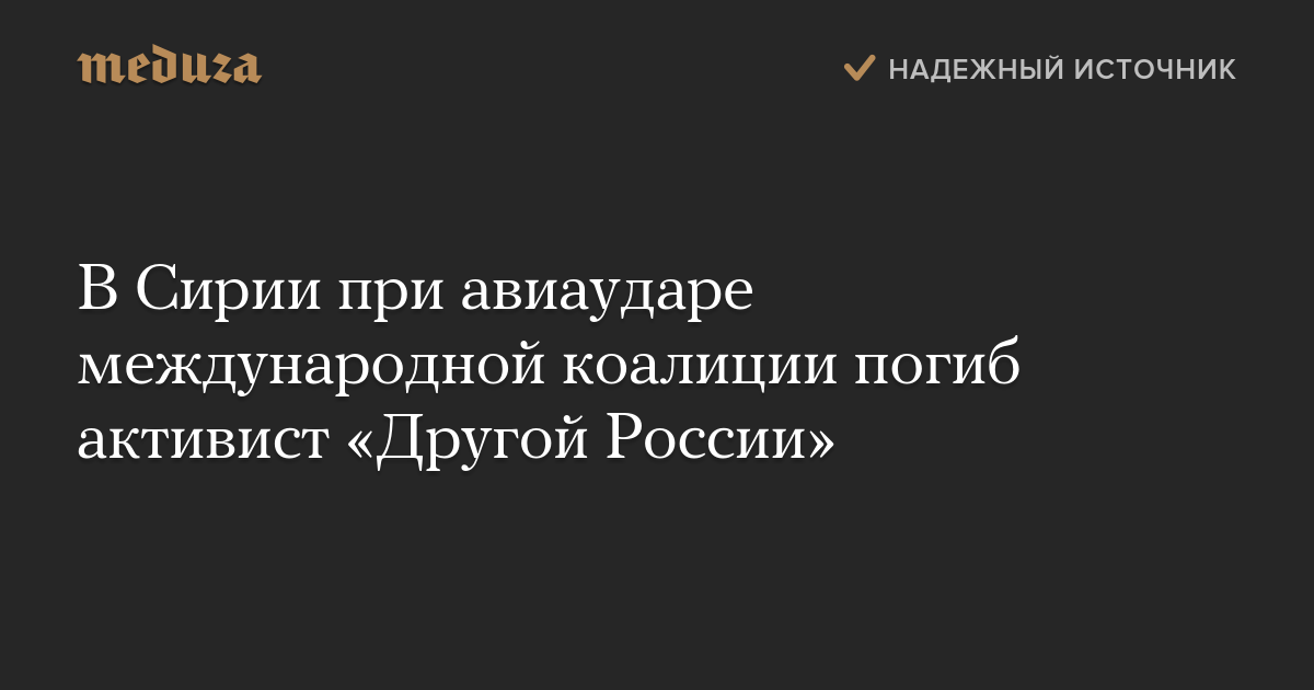 В Сирии при авиаударе международной коалиции погиб активист «Другой России»
