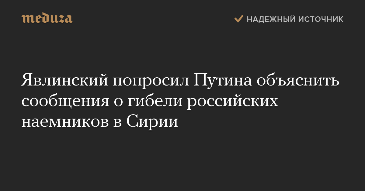 Кандидат в президенты России от партии «Яблоко» Григорий Явлинский обратился к президенту Владимиру Путину с требованием прояснить ситуацию в связи с сообщениями о гибели в Сирии российских наемников.