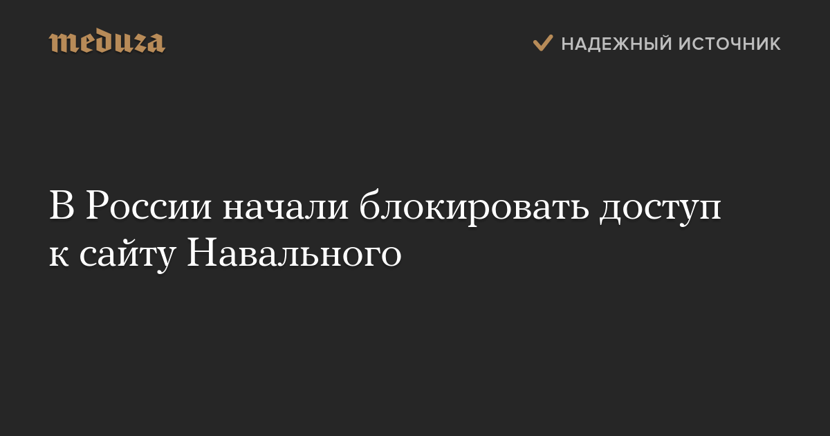 Роскомнадзор приступил к блокировке сайта оппозиционера Алексея Навального navalny.com.