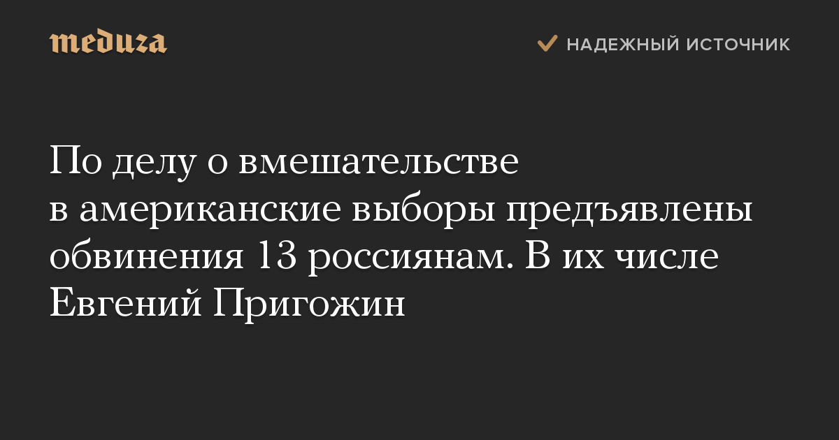 По делу о вмешательстве в американские выборы предъявлены обвинения 13 россиянам. В их числе Евгений Пригожин