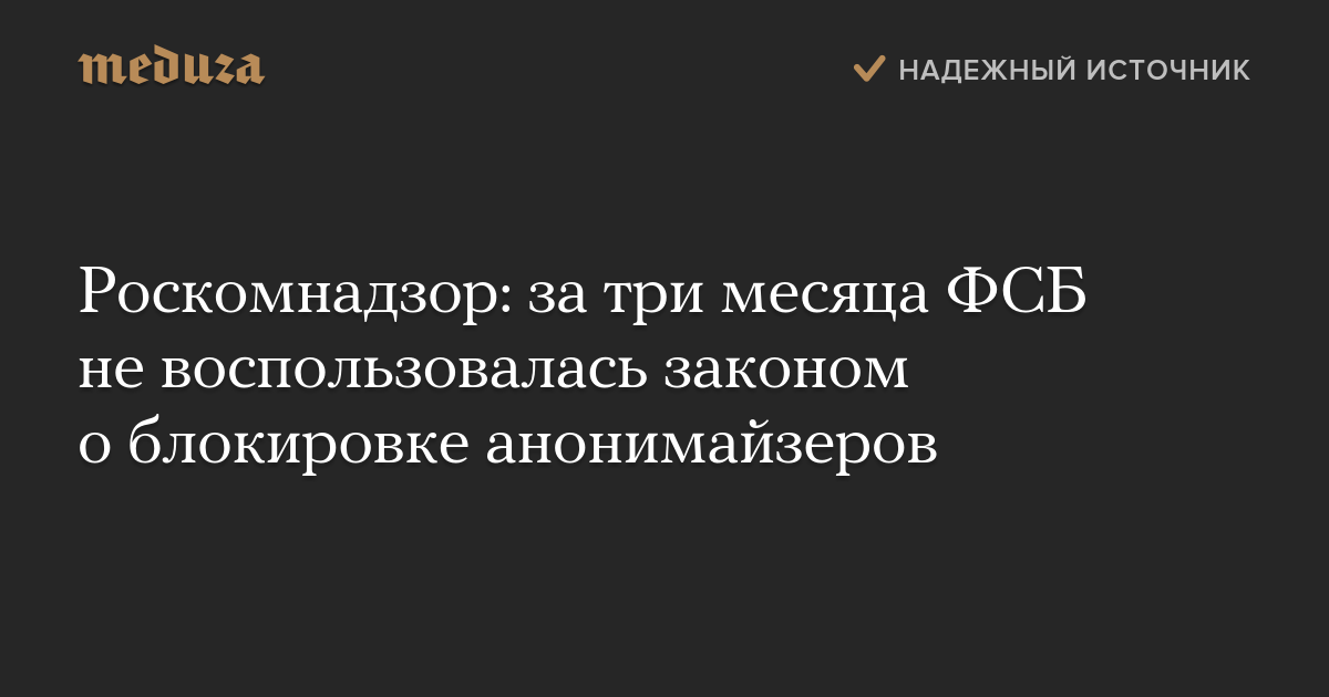 Роскомнадзор: за три месяца ФСБ не воспользовалась законом о блокировке анонимайзеров