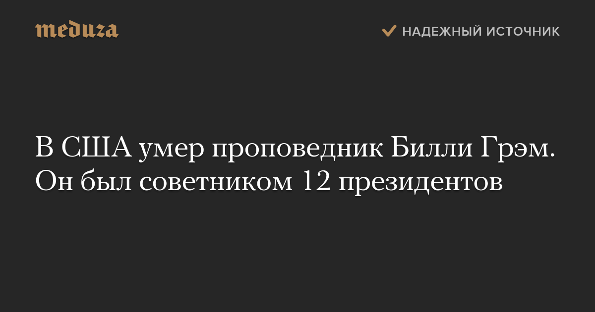 В США умер проповедник Билли Грэм. Он был советником 12 президентов