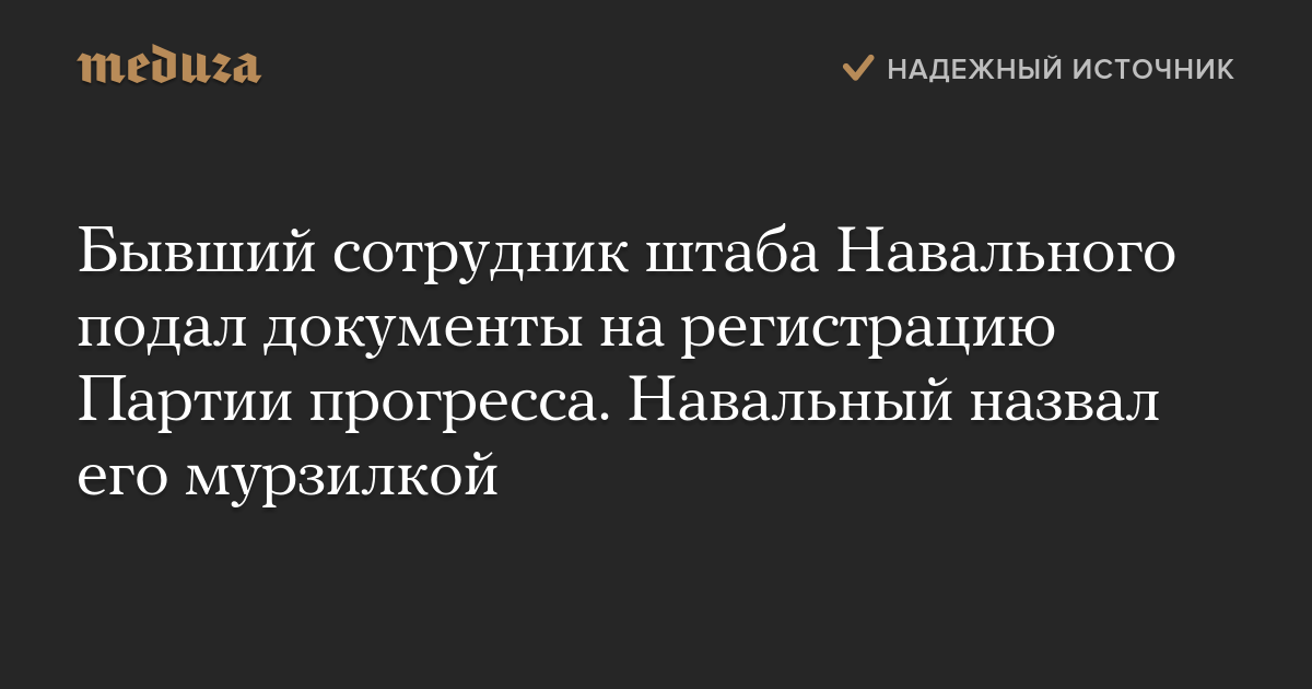 Бывший сотрудник штаба Навального подал документы на регистрацию Партии прогресса. Навальный назвал его мурзилкой