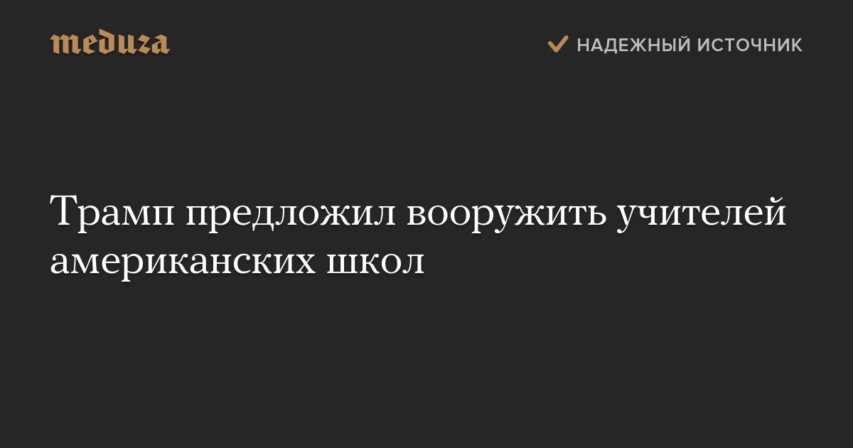 Президент США Дональд Трамп предложил разрешить учителям американских школ носить при себе оружие для самообороны. Об этом он заявил на встрече в Белом доме с учениками школы во Флориде, где 14 февраля подросток застрелил 17 человек.