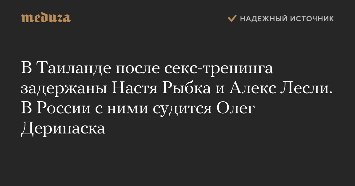 В Таиланде после секс-тренинга задержаны Настя Рыбка и Алекс Лесли. В России с ними судится Олег Дерипаска
