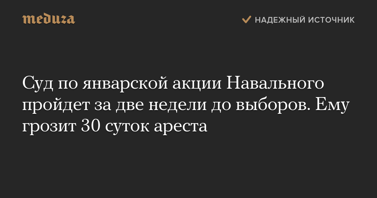 Суд по январской акции Навального пройдет за две недели до выборов. Ему грозит 30 суток ареста