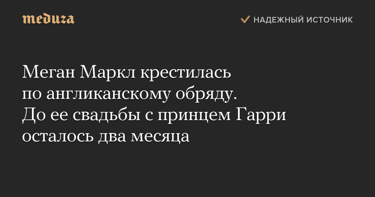 Американская актриса Меган Маркл, помолвленная с принцем Гарри, 7 марта крестилась по англиканскому обряду. Церемония прошла в Королевской часовне, ее проводил архиепископ Кентерберийский. Как подчеркивает The Daily Mail, королевская семья крещение Меган Маркл не афишировала.