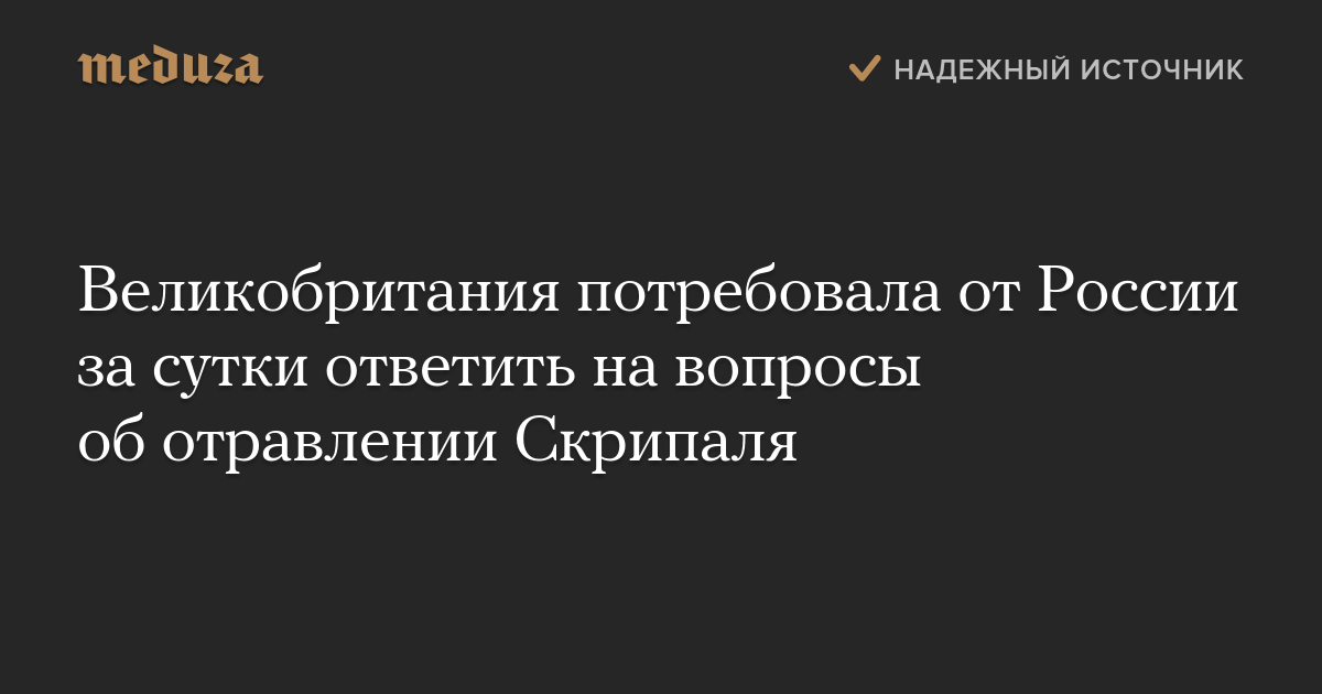 Великобритания потребовала от России за сутки ответить на вопросы об отравлении Скрипаля