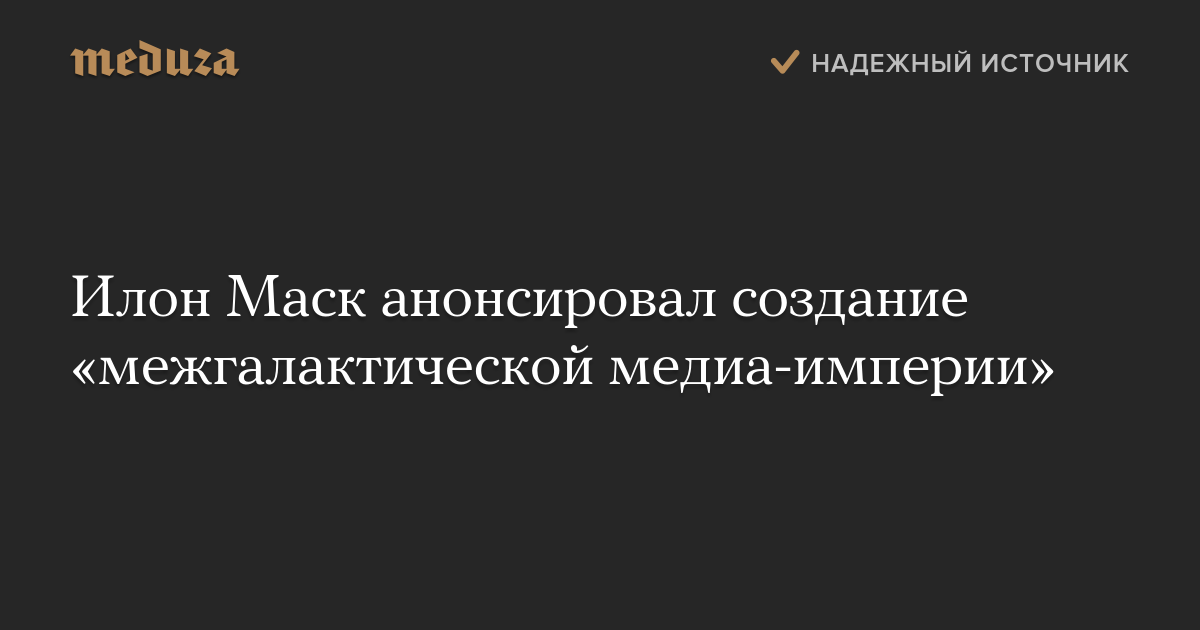 Илон Маск анонсировал создание «межгалактической медиа-империи»