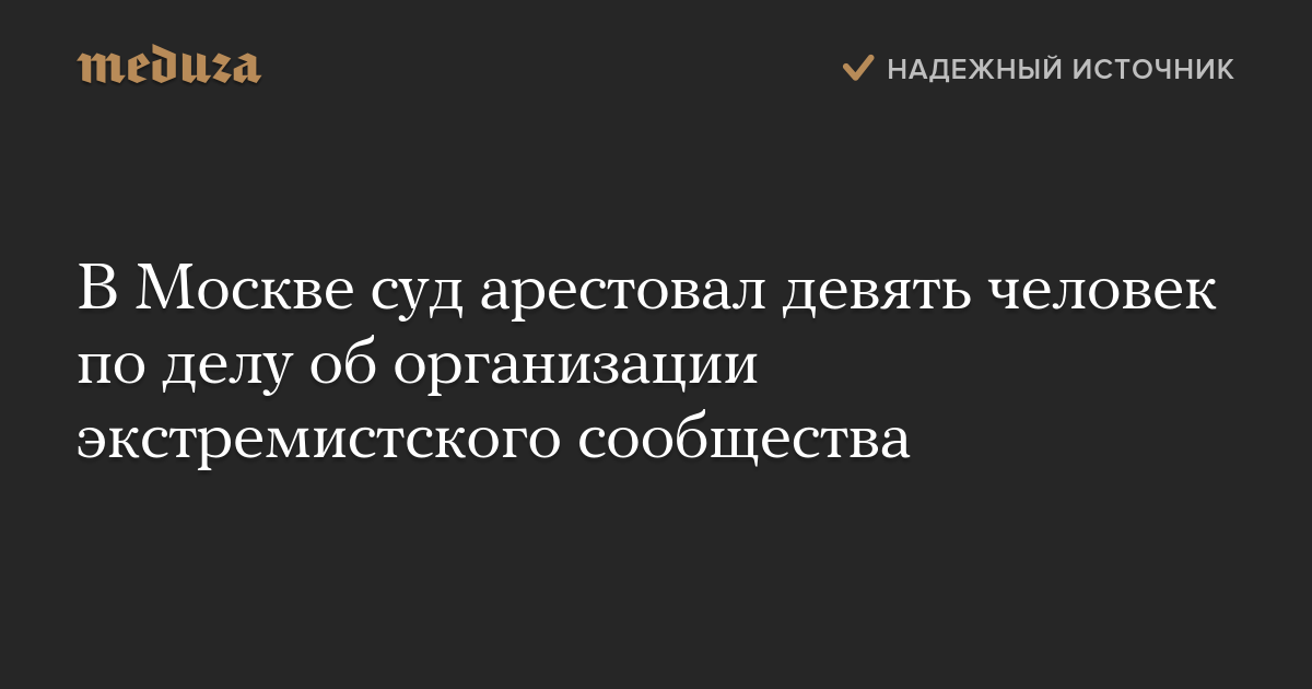 Дорогомиловский суд Москвы арестовал девять человек по делу об организации экстремистского сообщества (статья 282.1 УК РФ), сообщило вечером 16 марта «ОВД-Инфо» со ссылкой на адвоката Максима Пашкова.