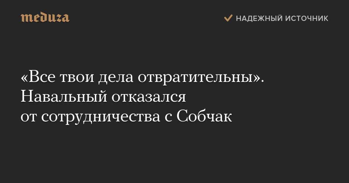 «Я буду судить по делам. Все твои дела отвратительны и лицемерны. Извини за такую откровенность», — ответил Навальный на предложение Собчак.