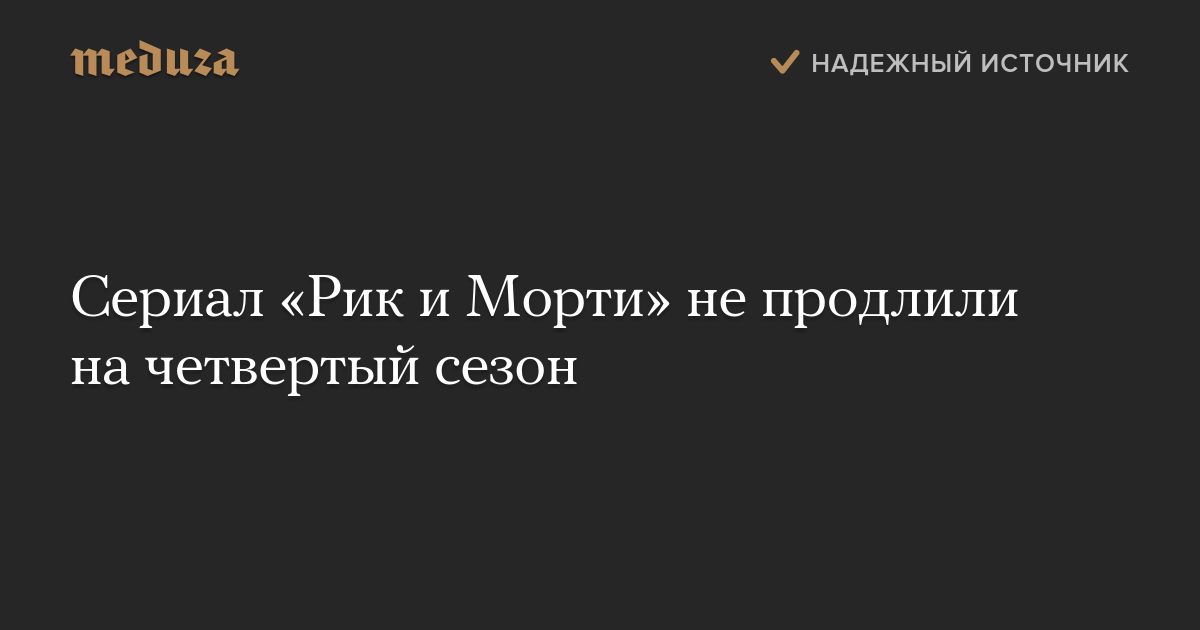 Американский телеканал Cartoon Network не заказал производство четвертого сезона анимационного сериала «Рик и Морти». Об этом рассказал в твиттере один из создателей мультсериала Дэн Хармон.