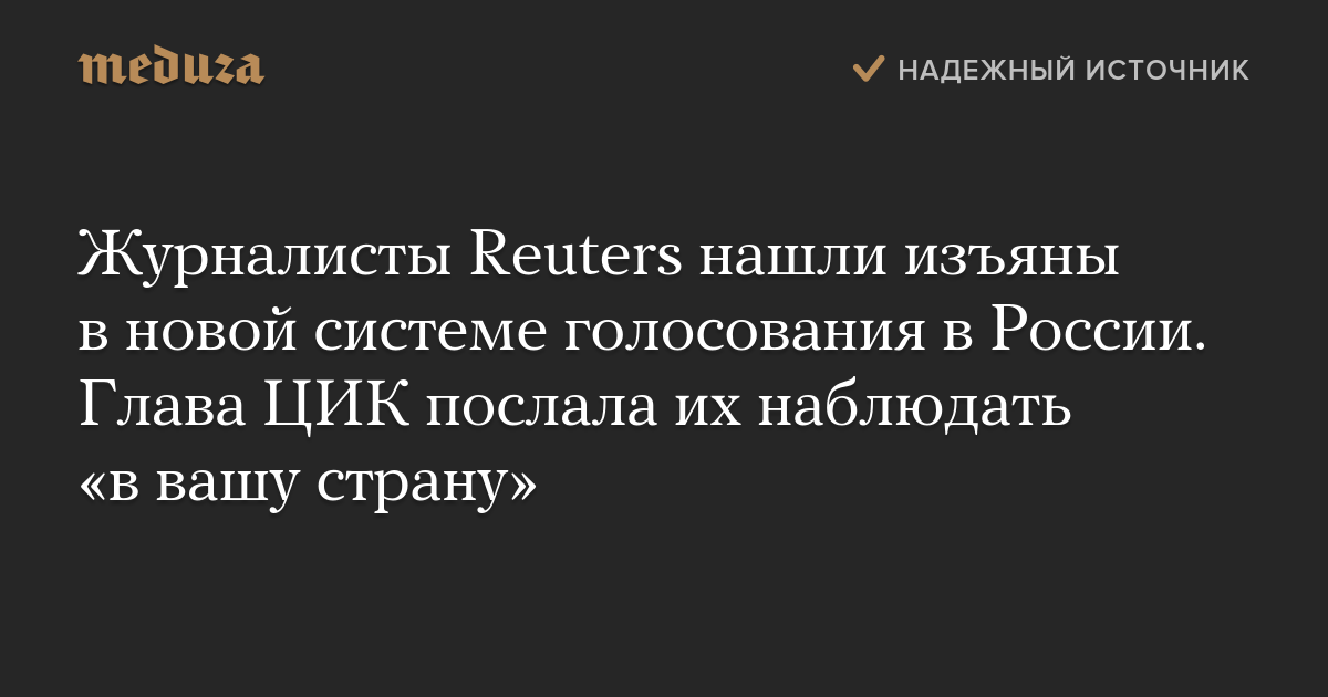 Журналисты Reuters нашли изъяны в новой системе голосования в России. Глава ЦИК послала их наблюдать «в вашу страну»