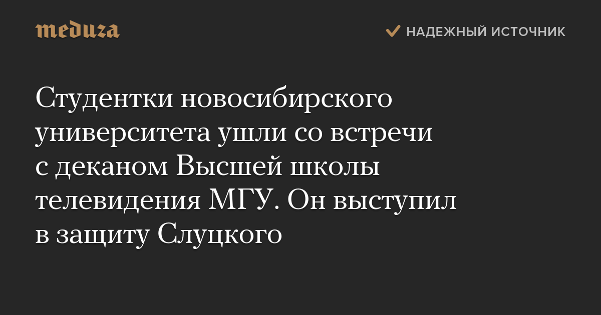 Студентки новосибирского университета ушли со встречи с деканом Высшей школы телевидения МГУ. Он выступил в защиту Слуцкого