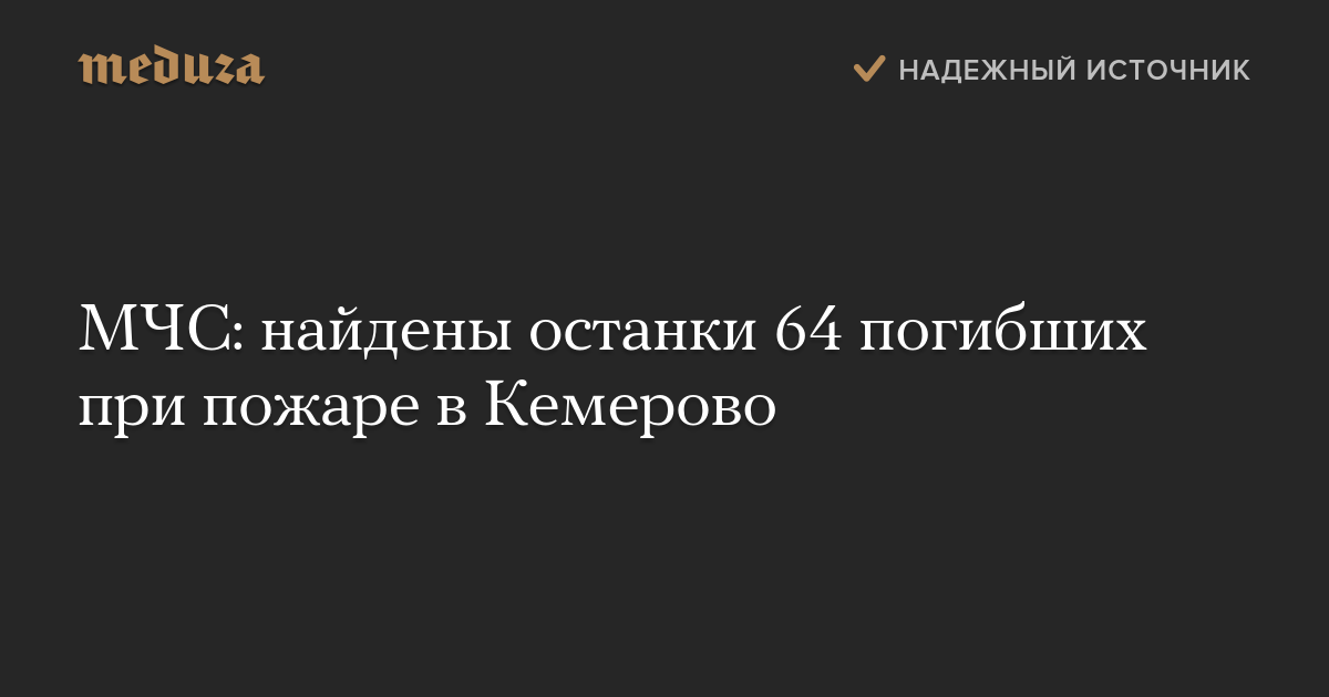 МЧС: найдены останки 64 погибших при пожаре в Кемерово
