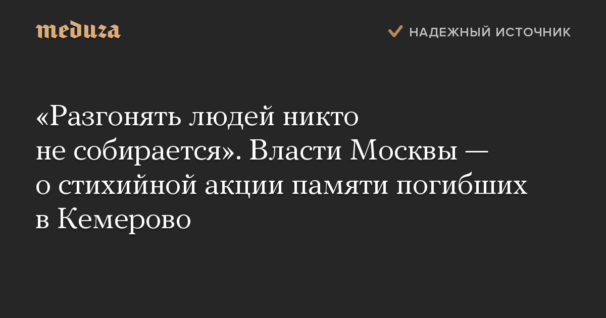 «Разгонять людей никто не собирается». Власти Москвы — о стихийной акции памяти погибших в Кемерово