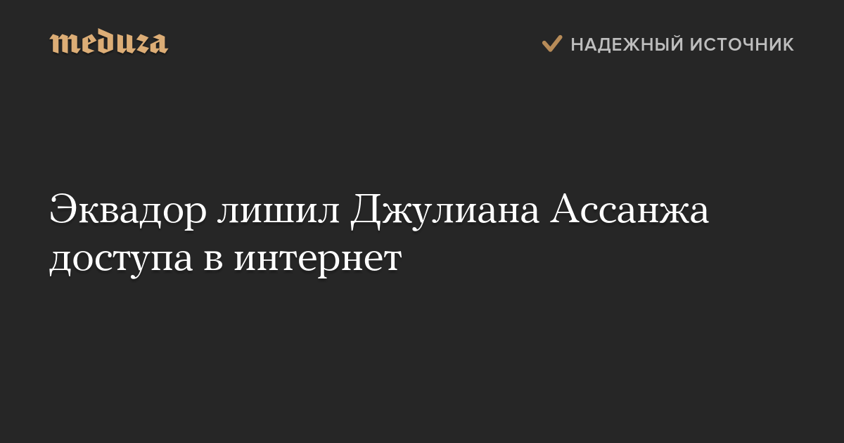 Власти Эквадора лишили средств связи с внешним миром основателя WikiLeaks Джулиана Ассанжа, живущего в посольстве этой страны в Лондоне. Об этом сообщается в твиттере Национального секретариата коммуникаций Эквадора.