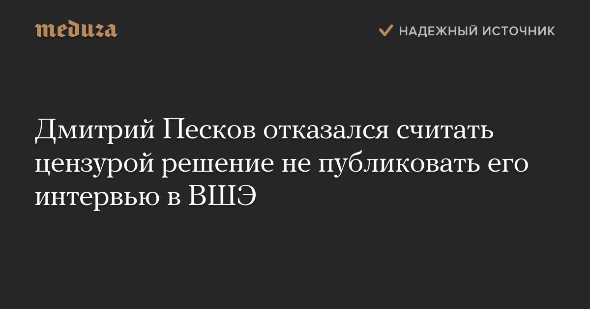 Дмитрий Песков отказался считать цензурой решение не публиковать его интервью в ВШЭ