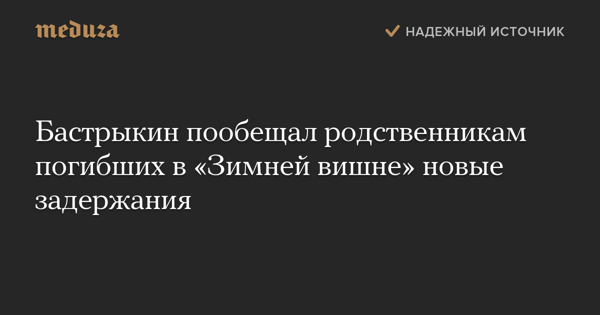 Бастрыкин пообещал родственникам погибших в «Зимней вишне» новые задержания