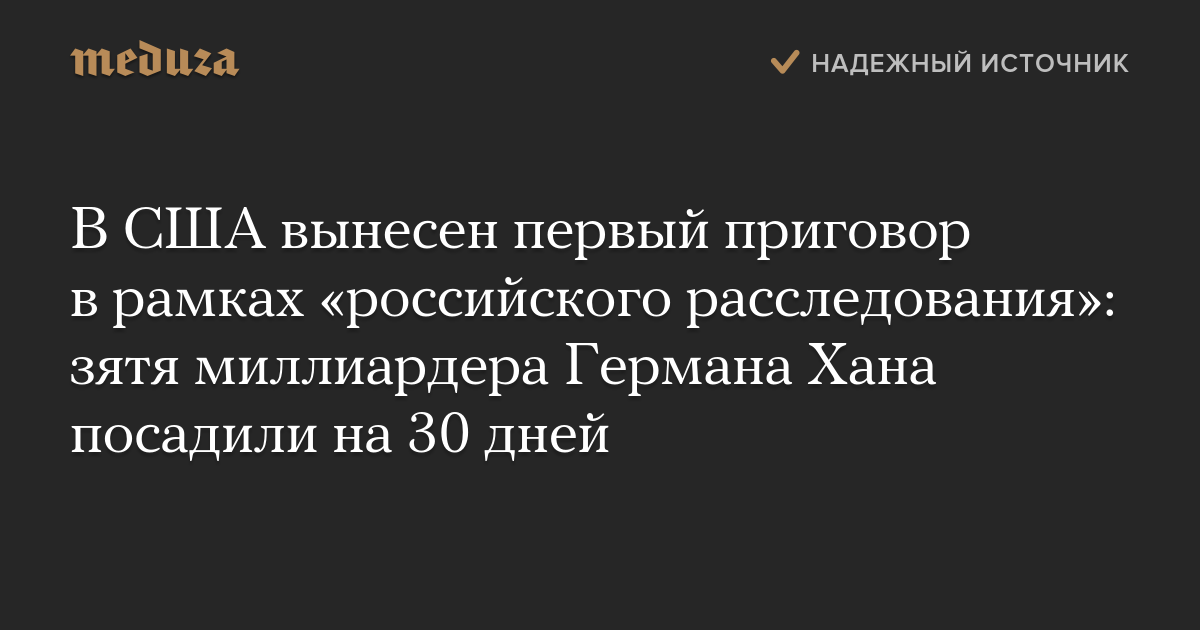 В США вынесен первый приговор в рамках «российского расследования»: зятя миллиардера Германа Хана посадили на 30 дней