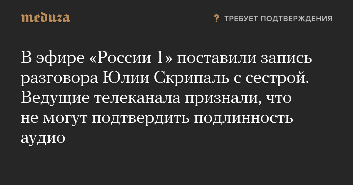 В эфире «России 1» поставили запись разговора Юлии Скрипаль с сестрой. Ведущие телеканала признали, что не могут подтвердить подлинность аудио