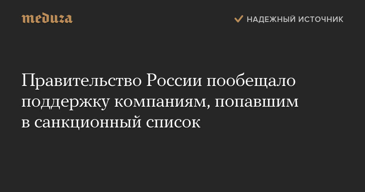 Правительство России пообещало поддержку компаниям, попавшим в санкционный список
