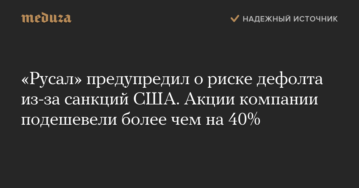 «Русал» предупредил о риске дефолта из-за санкций США. Акции компании подешевели более чем на 40%
