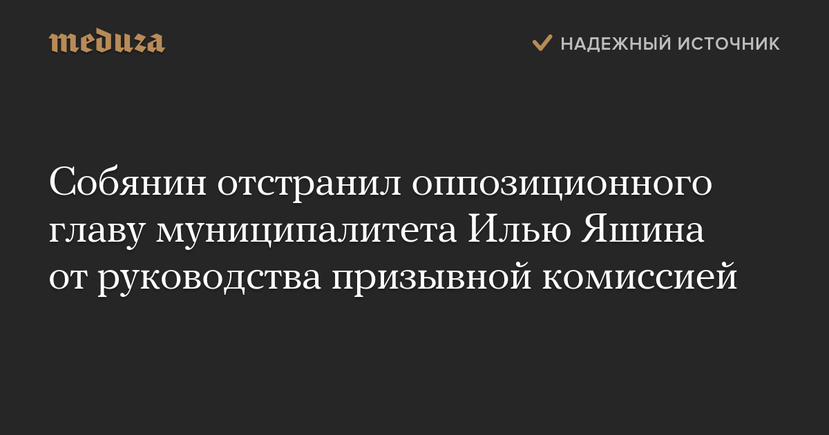 Собянин отстранил оппозиционного главу муниципалитета Илью Яшина от руководства призывной комиссией