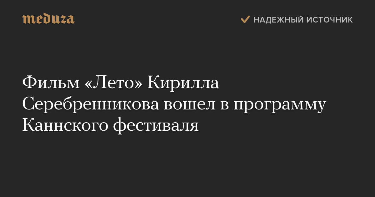 Фильм «Лето» режиссера Кирилла Серебренникова отобран в основную программу Каннского кинофестиваля. Об этом сообщается в официальном твиттере кинофестиваля.