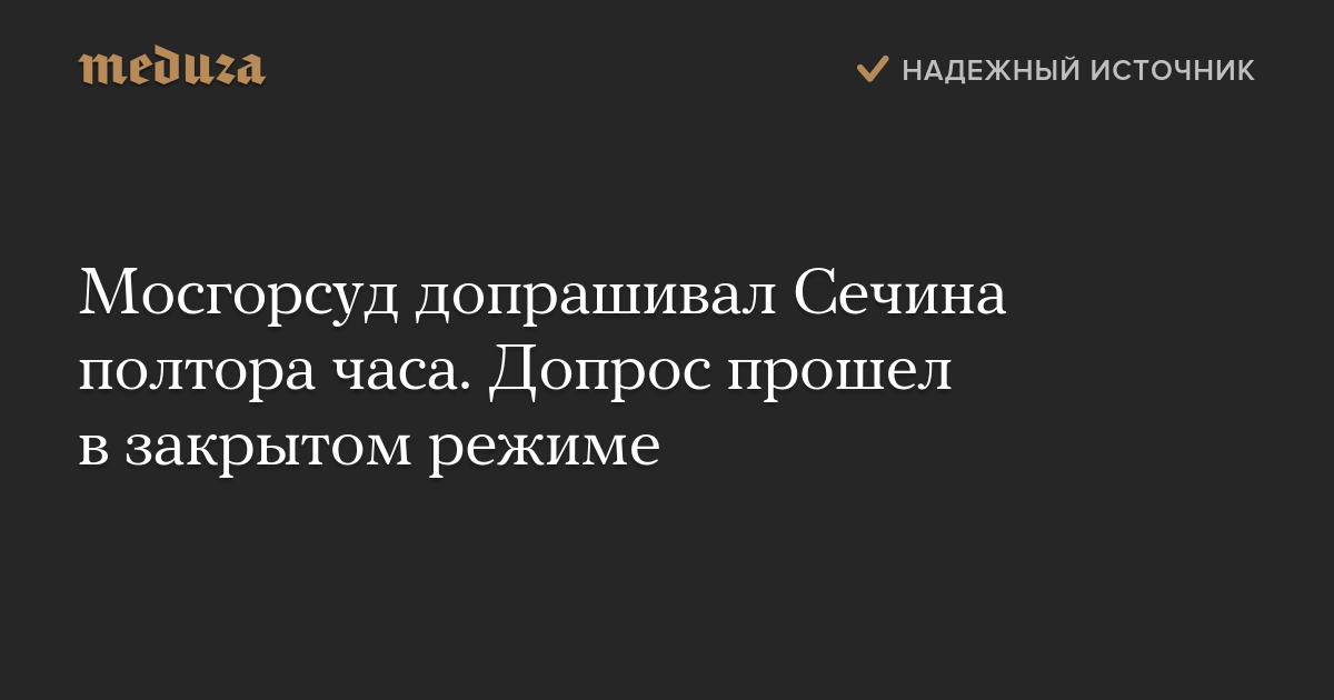 Мосгорсуд допрашивал Сечина полтора часа. Допрос прошел в закрытом режиме