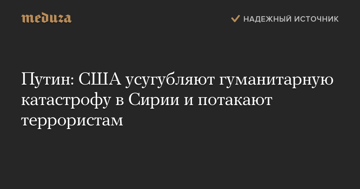 Путин: США усугубляют гуманитарную катастрофу в Сирии и потакают террористам