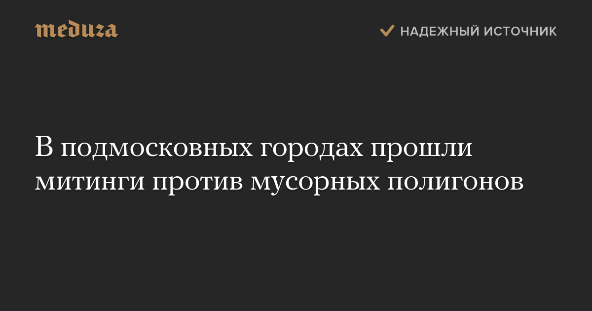 В нескольких подмосковных городах днем 14 апреля прошли митинги против мусорных полигонов.