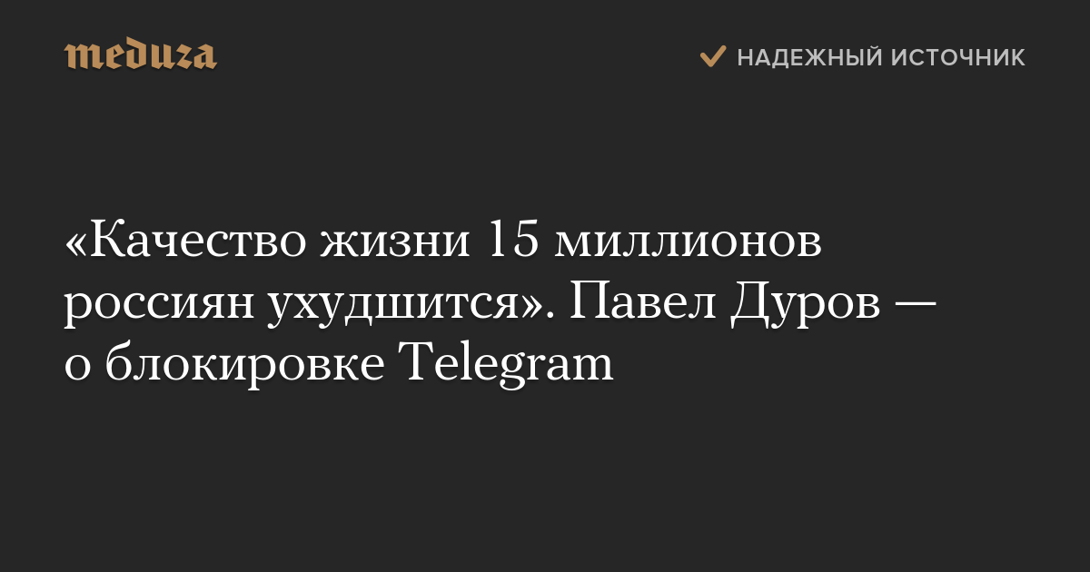 «Качество жизни 15 миллионов россиян ухудшится». Павел Дуров — о блокировке Telegram